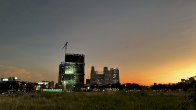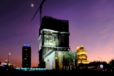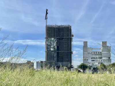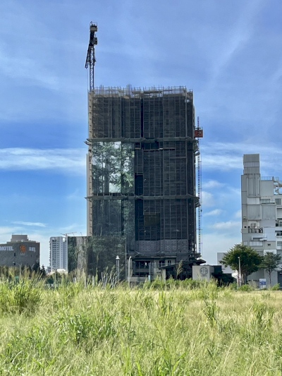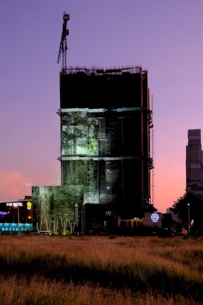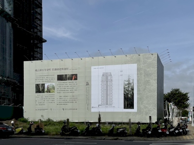 不是防塵網、不是廣告標語,尚在工程進行中的「陸府續森」建築外觀換上了「神木新裝」,這是一幅高79.1公尺的「桃山神木」1:1等身照,為台灣資料所載的第三高巨木,也是台灣可拍攝等身照攝影的第一高巨木。