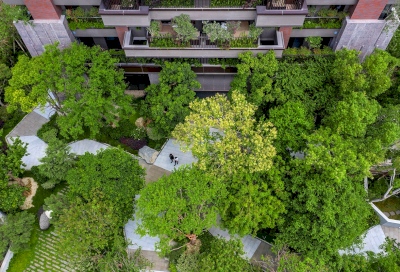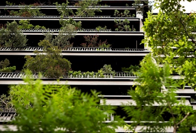 陸府生機大樓「建築上種樹」,在都會裡打造綠色山谷,實現親近自然的美好。