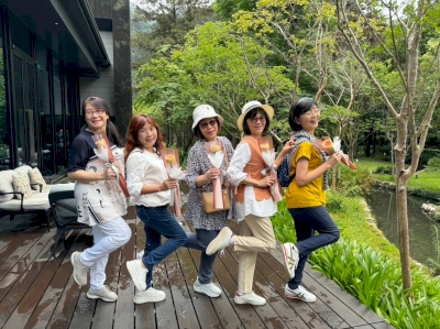 谷關不僅是遠近馳名的溫泉勝地,更有深厚的原民部落文化,自然幽靜的山林環境也受到日本飯店星野集團的青睞,開設台灣第一間虹夕諾雅溫泉渡假村,與自然共鳴的建築與景觀,是沉浸式旅遊的一大特色。在日本庭園造景師設計的「水之庭園」中,尊齡學員漫步共學柳杉林、蕨類與觀葉植物,藉由「草花散策」的活動讓感官與自然對話,體驗森林與旅行雙重療癒力,與戶口名簿外的陸府家人共創獨特的美好記憶。